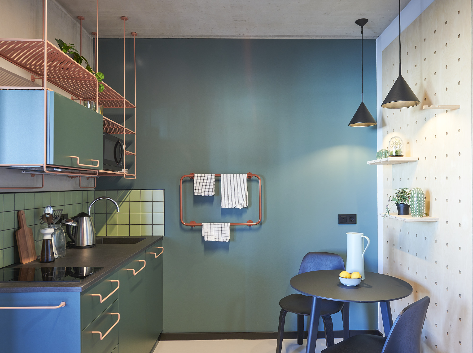 The mini kitchen has all the essentials—a fridge and freezer, microwave, and induction hob—giving you the perfect setup to live, cook, and flex your space your way.