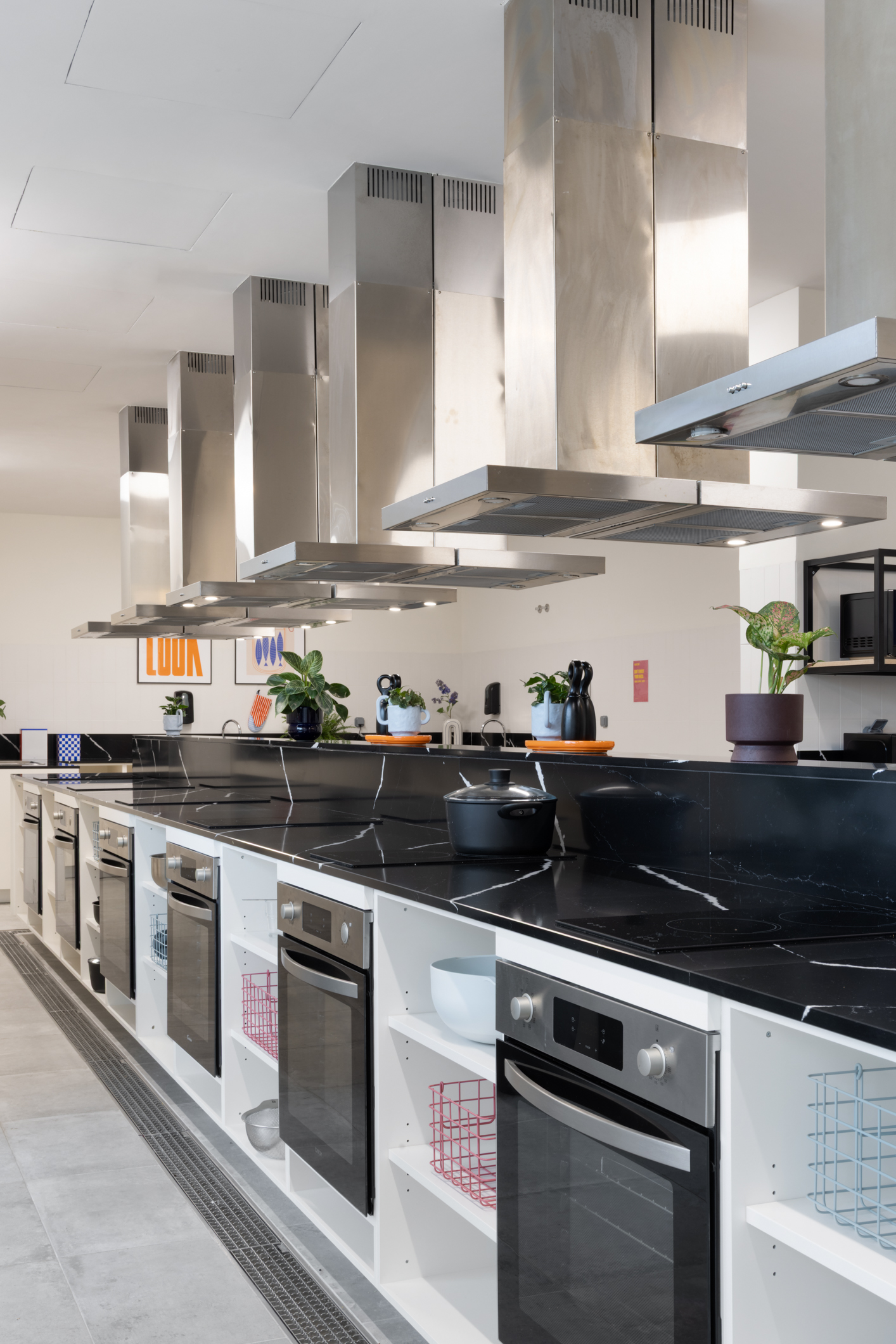 This is where it all happens, late-night chats, weekend brunches, post-party debriefs. With an oven, fridge, and full cooking setup, it’s the go-to spot to cook, eat, party, and chill.