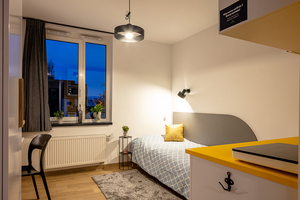 To taki mix światów: Twój pokój, Twoje zasady i gotowa znajomość tuż obok. Do tego siłownia, pokoje do nauki, games area i wszystkie udogodnienia jak pralnia i miejsce na rower – z wszystkimi rachunkami w cenie. Proste, social i bezstresowe życie.