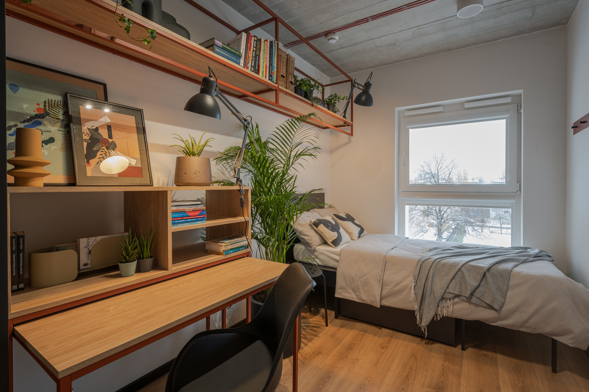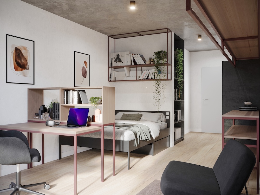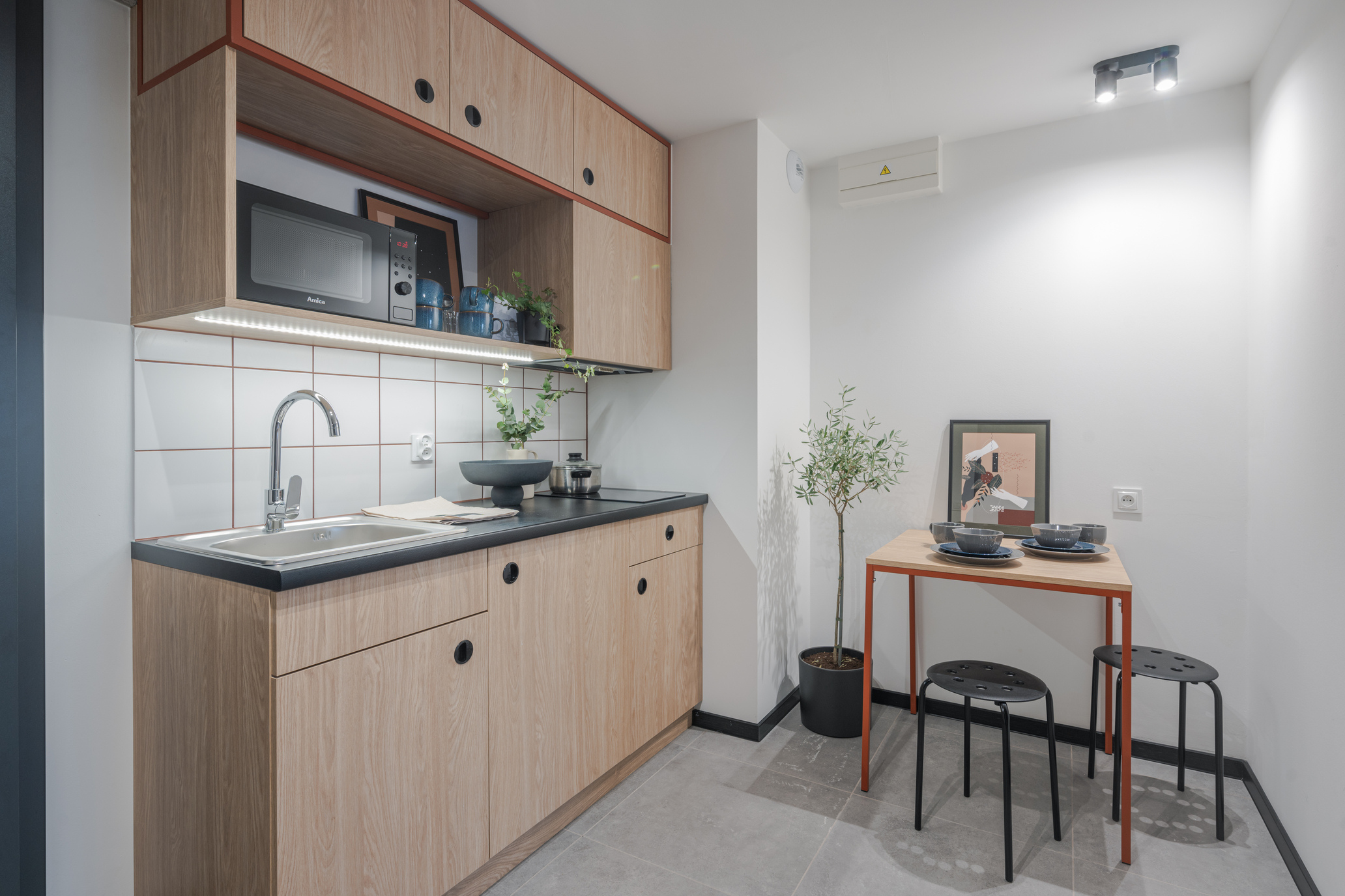 The Studio is smart, all-in living, designed to do it all. Fully furnished and move-in ready, it comes with a mini kitchen featuring a hob and fridge to keep you fuelled from morning coffee to midnight snacks and your own private bathroom.